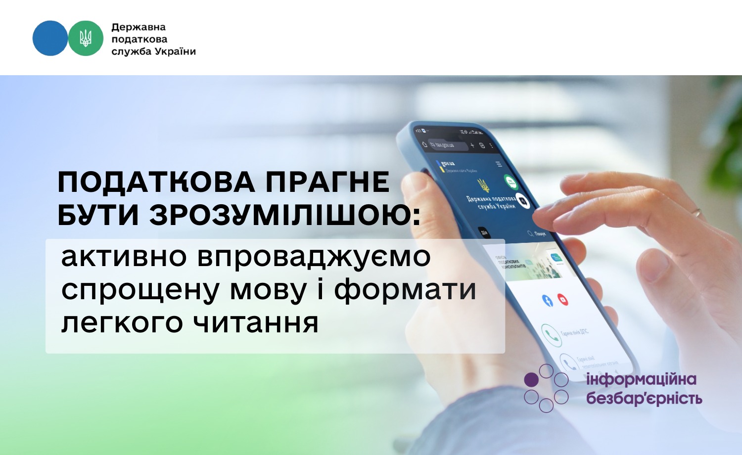 Також у публікаціях щодо вдосконалення безбар’єрності ДПС використовує логотип, типові рішення щодо кольорів і дизайну оформлення комунікації в рамках реалізації Нацстратегії створення безбарʼєрного простору. Це допомагає зробити контент впізнаваним та комфортним для сприйняття.