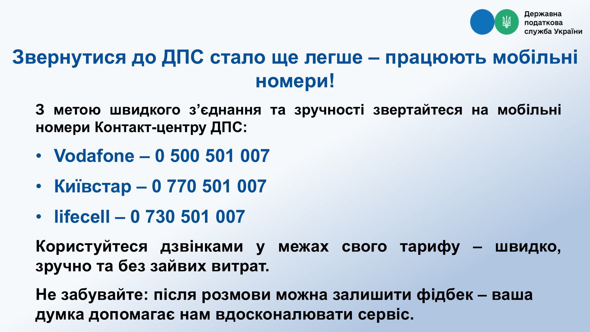 Звернутися до ДПС стало ще легше – працюють мобільні номери!