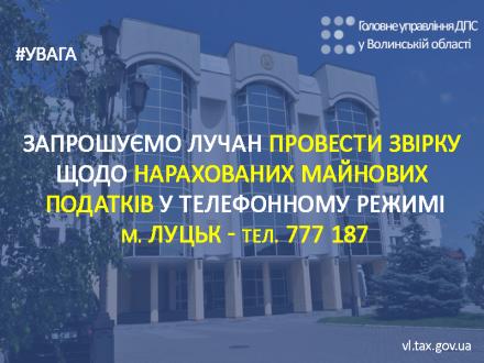 Провести звірку щодо нарахованих сум податку на нерухоме майно або земельного податку можна в телефонному режимі.