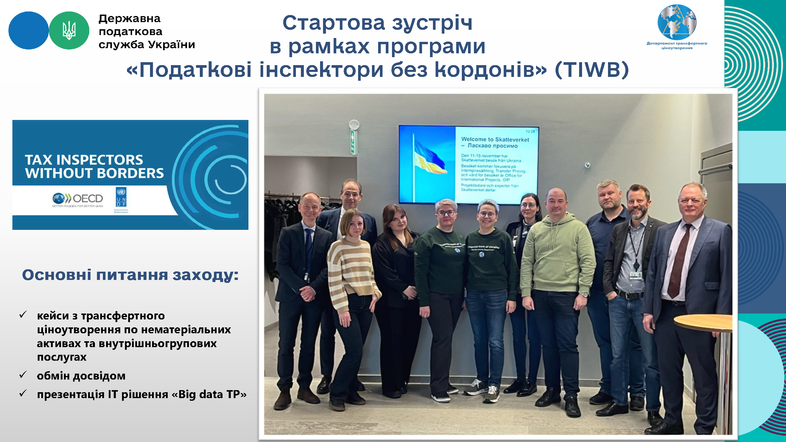 Учасники зустрічі домовились у подальшому підтримувати високий рівень співпраці в рамках програми TIWB у контексті протидії міжнародним схемам ухилення від оподаткування, обміну досвідом та розробці сучасних методологічних підходів для аналізу трансфертного ціноутворення.