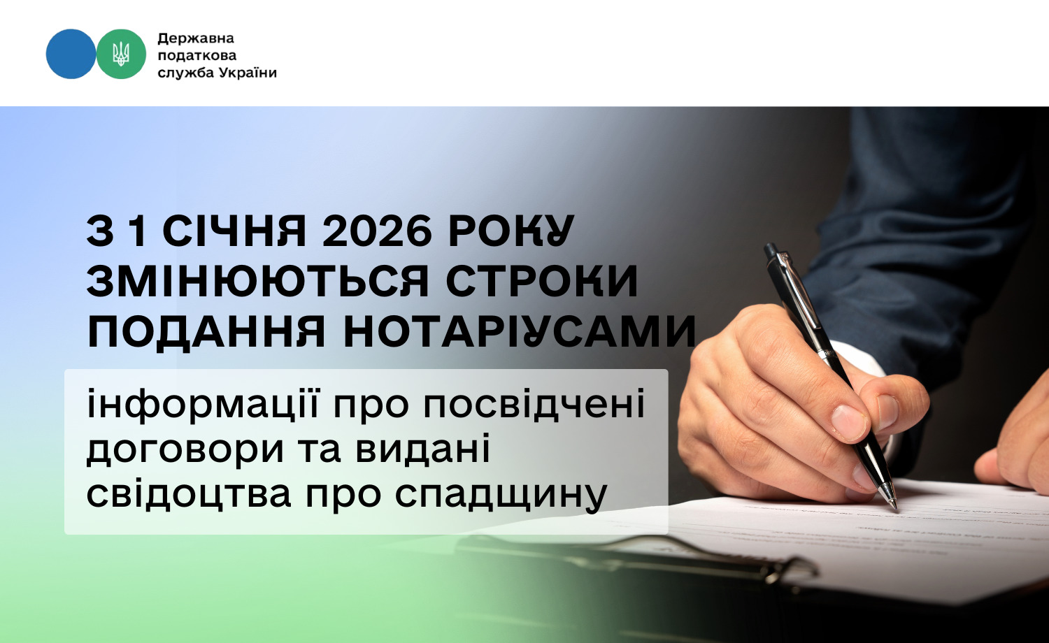З 1 січня 2026 року змінюються строки подання нотаріусами інформації про посвідчені договори та видані свідоцтва про спадщину