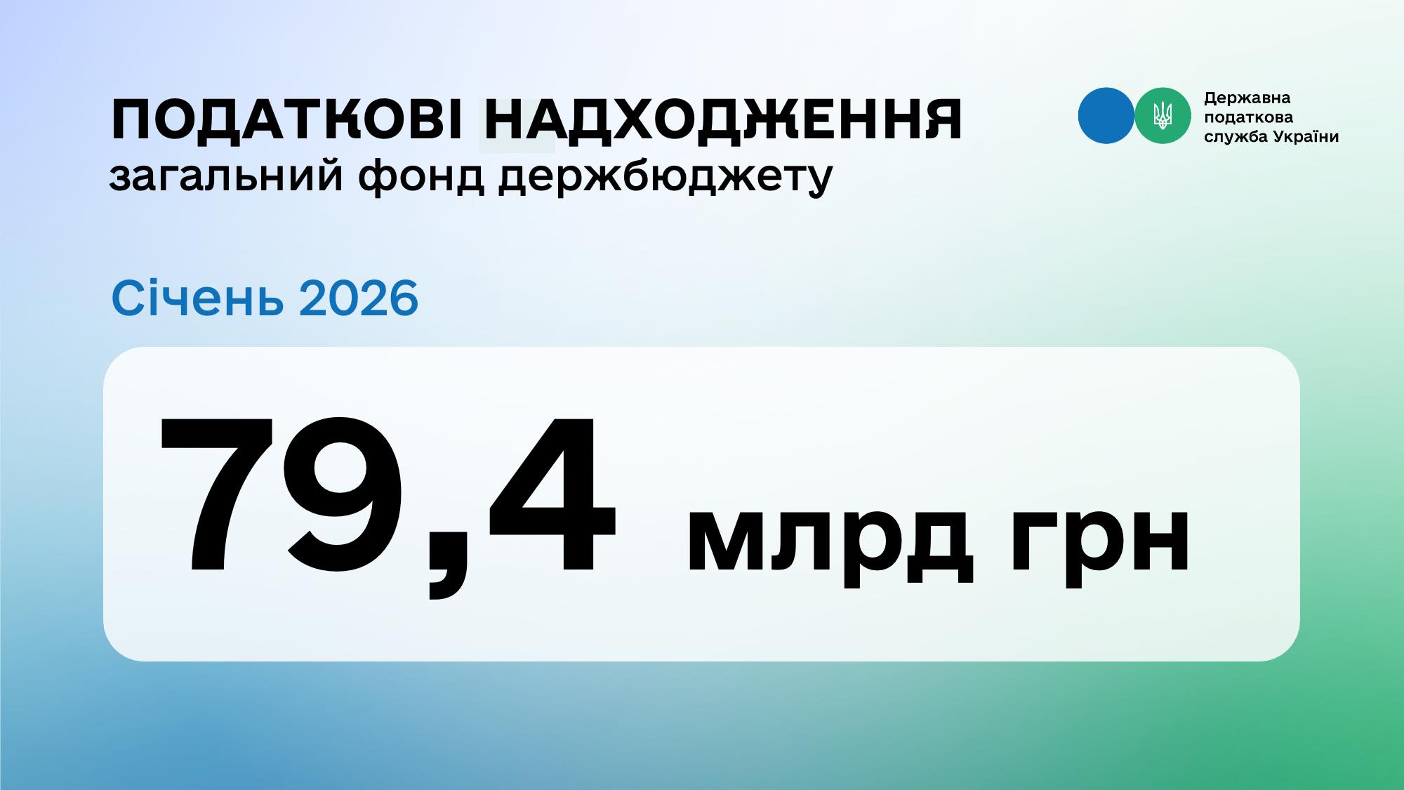 До загального фонду держбюджету у січні 2026 року  надійшло 79,4 млрд грн (91,8 % плану) податків та зборів, які контролює ДПС. Про це на своїй сторінці у Facebook повідомила в. о. Голови ДПС Леся Карнаух