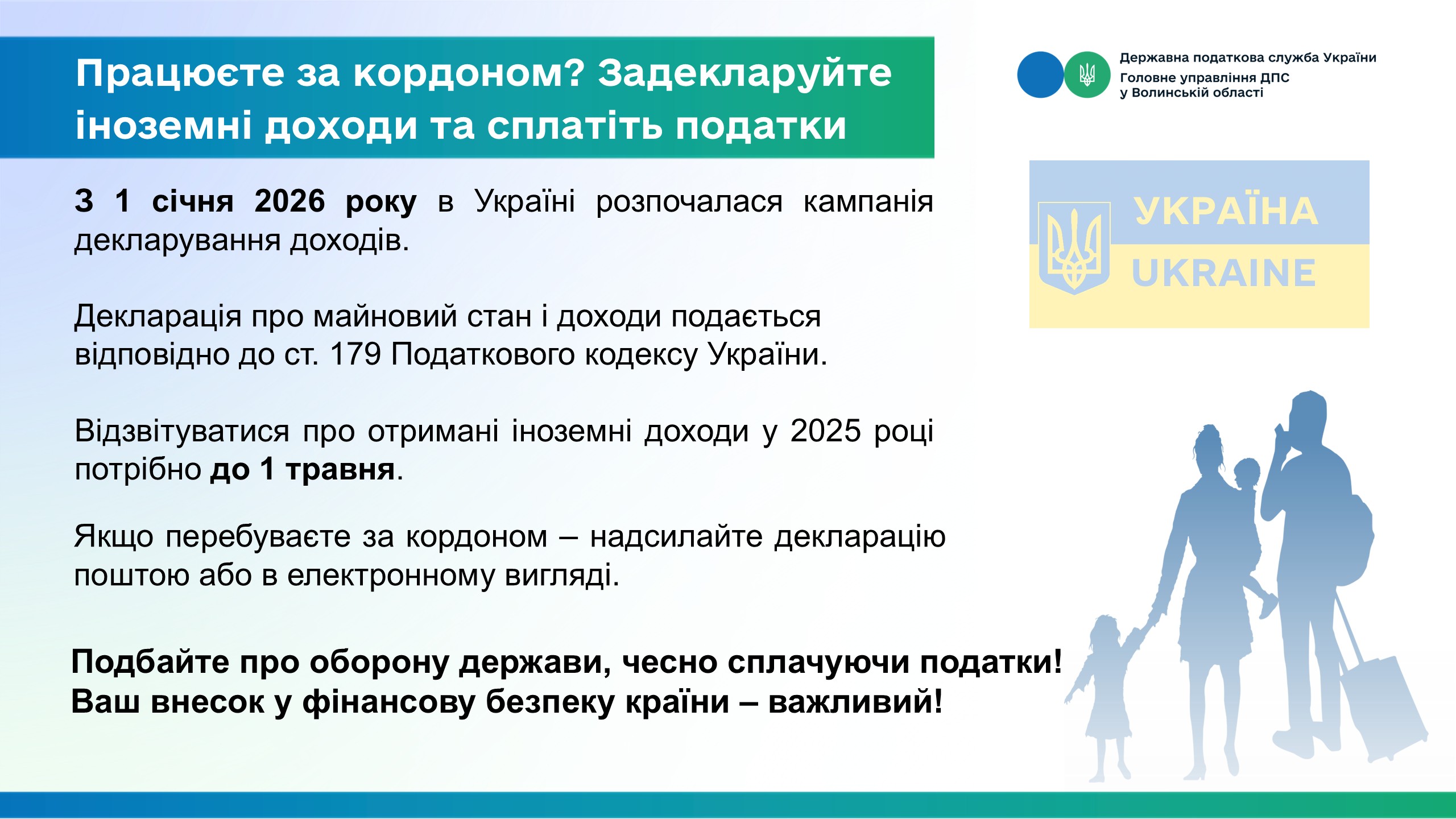 З 1 січня 2026 року в Україні розпочалася кампанія декларування доходів. Декларація про майновий стан і доходи подається відповідно до ст. 179 Податкового кодексу України.