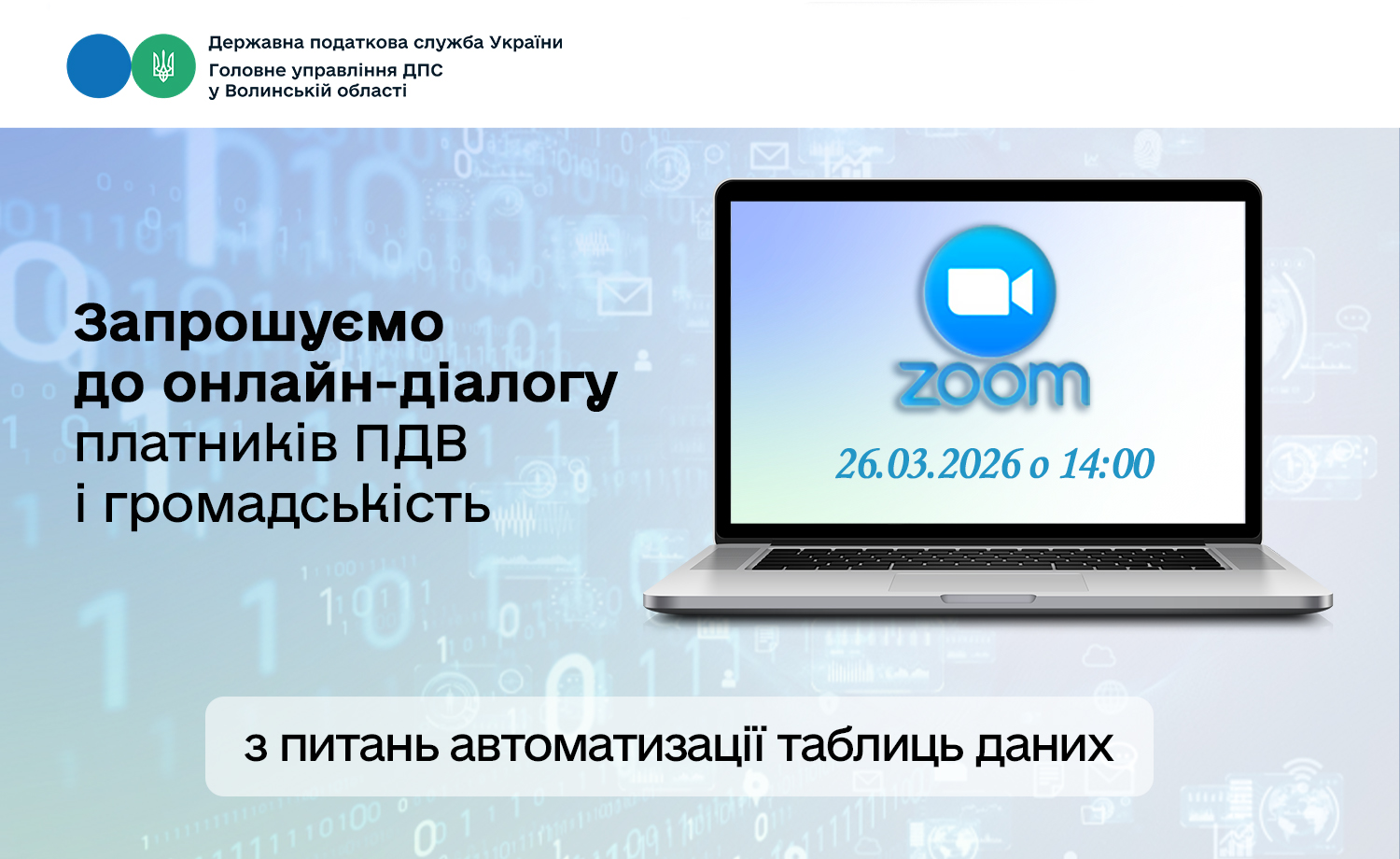 У рамках роботи Комунікаційної податкової платформи Головне управління ДПС у Волинській області запрошує до онлайн-діалогу платників ПДВ для обговорення та пошуку оптимальних рішень щодо вдосконалення роботи СМ КОР.