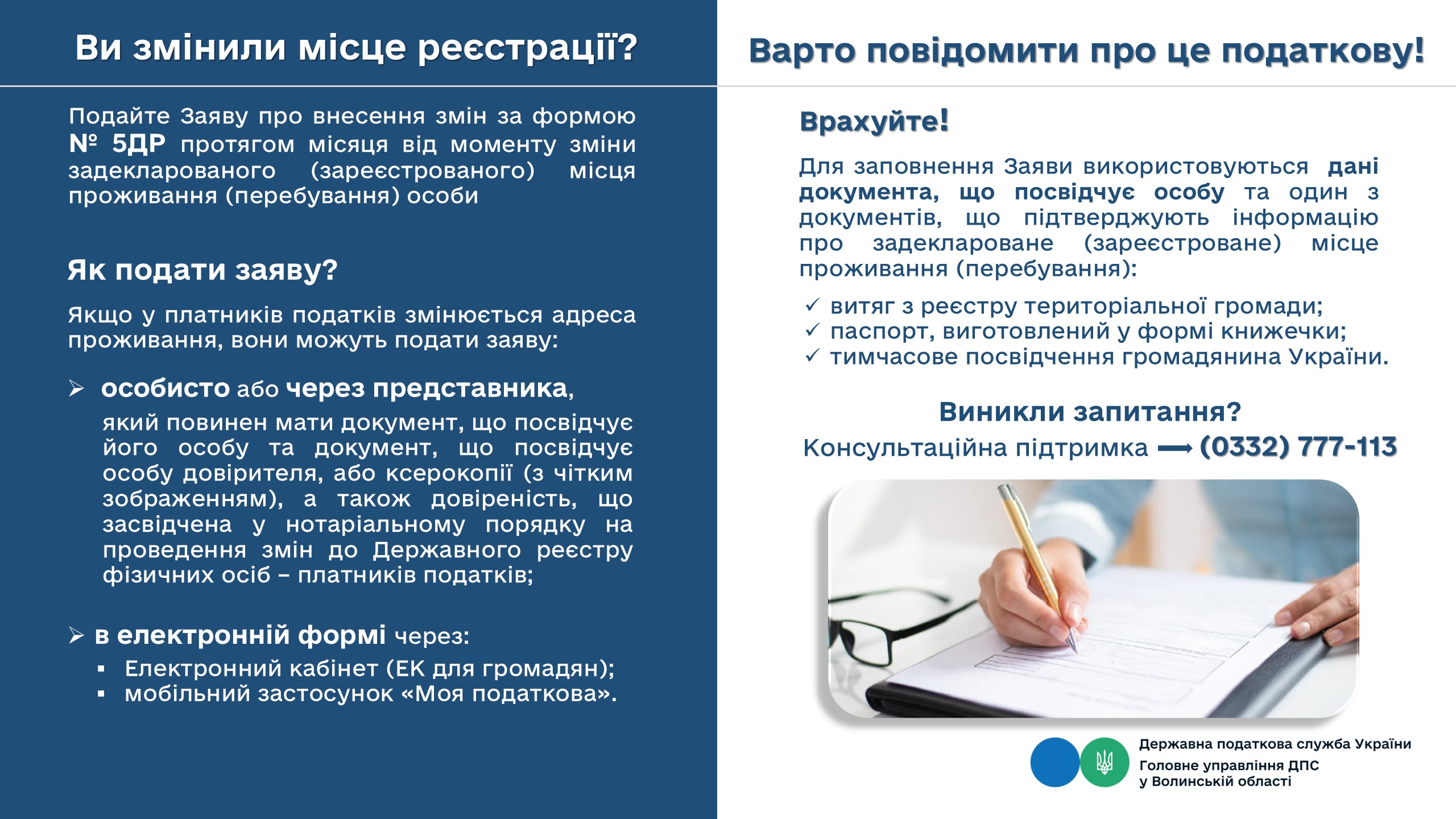 Якщо у платників податків змінюється адреса проживання, вони можуть подати заяву: