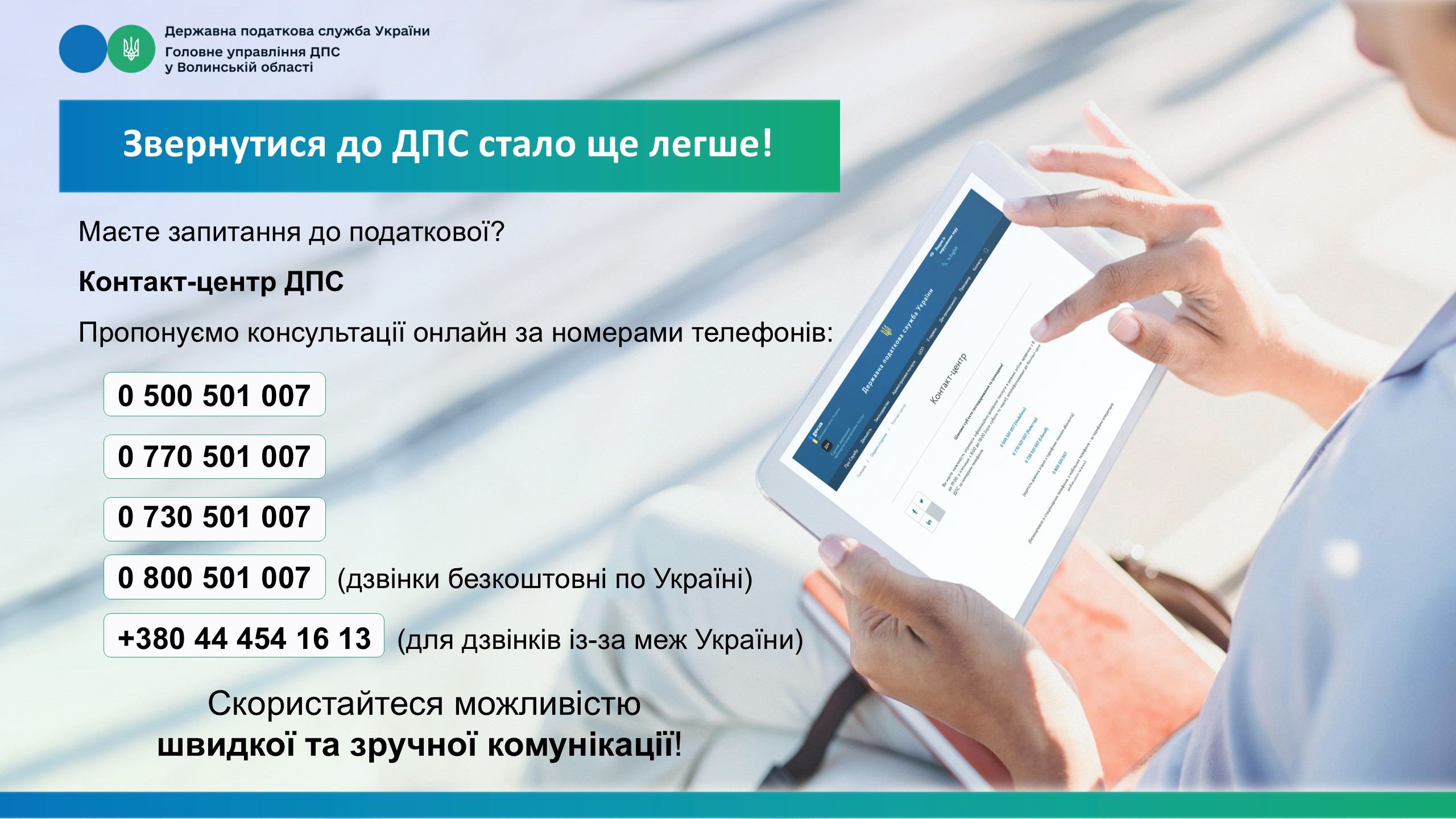 Маєте запитання до податкової? Контакт-центр ДПС.
