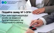 У разі зміни відповідальної особи за ведення бухгалтерського чи податкового обліку подається заява № 1-ОПН
